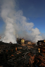 As of Wednesday night, the cause had not been determined, Anderton said. Fire marshals expected the investigation to take at least a week, he said. Anderton said the blaze was contained as of 9 a.m., but some flare-ups kept crews busy for hours more.