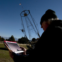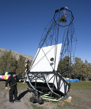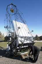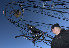 A group of amateur astronomers visited the telescope Sunday night. While a high, thin covering of clouds didn't allow them to view the stars, they were impressed with the size of the project and the dedication of the man.