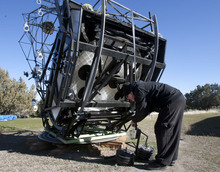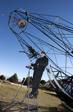The towering structure breaks down somewhat and could be hauled in a trailer and reassembled with a small, portable crane Clements made to build the telescope initially. He simply needs to raise the money for the trailer.