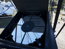 He found ways to cut costs everywhere he could buying a trailer hitch and dumbbell weights to counterbalance the huge structure and working with Triple-S Steel for the metal and Metal Line Fabrication for the bearings. One of the riskiest parts of the project was turning the huge 70-inch piece of glass into a mirror by applying the silvering himself. But with the guidance of Angel Gilding, he was successful on his second attempt, he said.