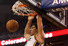 Utah Jazz center Enes Kanter (0) dunks the ball in the first quarter as the Utah Jazz host