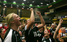 Hurricane High celebrates a big score as they come with in two points of winning the their 3A