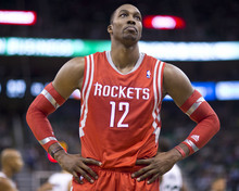 Rockets center Dwight Howard reacts to a foul call in the first half of a game against the