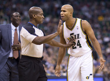 Jazz forward Richard Jefferson is called for a technical foul in the first half of a game