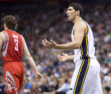 Jazz center Enes Kanter reacts to a foul call in the first half of a game against the Houston Rockets on Saturday, Nov. 2, 2013, at EnergySolutions Arena in Salt Lake City.