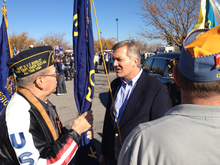 "For our troops, today is another day in harm's way," the congressman told the small gathering as some ate hot dogs and chili provided by local veterans. "For their families, today is another day without a loved one nearby. And, for our injured veterans, today is another day of slow and difficult recovery. So, while it is important that we recognize today, it is far more significant that we spend all of our days determined to keep the promises that we've made to everyone who serves or has served our great country."