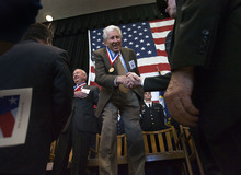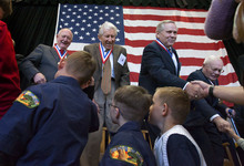 Pearl Harbor veteran Marion Kesler, Army Air Corp member Mel Holley, Navy SEAL Mark Petersen and Vietnam Special Forces member Newell Huntsman were specifically honored for the service by Taylorsville Mayor Jerry Rechtenbach.