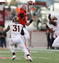 The interceptions Wilson threw at the end of the game marked the few times that Wilson looked to pass, as the Utes kept the ball on the ground for most of the game.