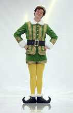 Wearing an absurdly perky green velvet elf suit, Buddy leads his love interest, Jovie (Libby Servais), and four child actors to Santa's mailbox, up and down store escalators and through the bedding department, where there's a slight costume crisis with a pin.