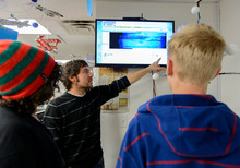 Salt Lake Arts Academy Science teacher Michael Clark demonstrates the monitoring system for