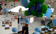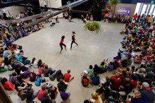 Students perform an improvised dance routine at the Salt Lake Arts Academy during an assembly announcing the completion of a 56-panel solar-energy project at the school in Salt Lake City Friday November 15, 2013. The 14,000-kilowatt solar energy system is expected to 19,870 kilowatt-hours of electricity per year, equivalent to the energy use of two average homes in Utah. Rocky Mountain Power awarded Salt Lake Arts Academy up to $49,450 to install the solar energy system.