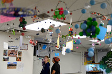 Salt Lake Arts Academy Science teacher Michael Clark demonstrates the monitoring system for the school's new 56-panel solar-energy project, in Salt Lake City Friday November 15, 2013. The 14,000-kilowatt solar energy system is expected to 19,870 kilowatt-hours of electricity per year, equivalent to the energy use of two average homes in Utah. Rocky Mountain Power awarded Salt Lake Arts Academy up to $49,450 to install the solar energy system.