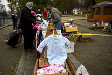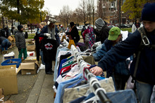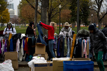 The nonprofit group set up a "boutique" with free clothes Saturday on the northwest corner of Pioneer Park, supplementing those desired offerings with homemade been-and-cheese burritos and bottled water.