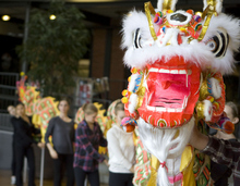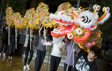 Dancers from Ballet West 2 rehearse with a 36-foot dragon at Trolley Square in Salt Lake Ci