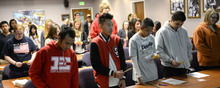 The conference followed a nearly two-hour ceremony commemorating the 150th anniversary of President Abraham Lincoln's Gettysburg Address at the Pennsylvania battlefield cemetery. The ceremony was broadcast over the Utah Education Network, at gettyready.org and for 30 East High students in a conference room at the University of Utah's Eccles Broadcast Center.