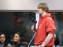 Other East High students, from U.S. government classes, asked about the five slightly varying versions of the Gettysburg Address, and which line of the address is Kostic's favorite.