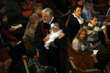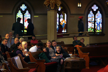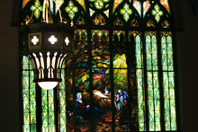 The new church featured three large stained-glass windows, designed by two brothers from Minneapolis, Robert and Thomas Giles. They told the story of Jesus' life from the manager through his resurrection.