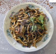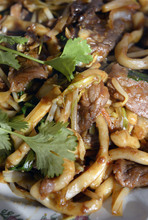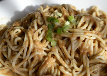 Shanghai Cool Noodle ($6) will also be an acquired taste an almost spaghettilike noodle served cool as the name implies, with a creamy peanut sauce. The dish also comes topped with a vegetable ($2.50) or meat ($3.50) that adds an extra acidic dimension to the dish, not to mention heat. It's an intriguing dish of hot versus cold, creamy versus sour.