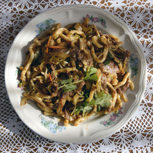 Moving on to entrées, Shepherd's Purse Shanghai Rice Cake ($8.95) halted me in my tracks the moment I spied it. Rice cake balls of sticky rice sliced into chewy rounds is stir-fried with pork in a light garlicky sauce with finely shredded shepherds purse, a common green often treated as a weed. It's a subtle dish with softer textures not everyone will appreciate; I couldn't get enough.