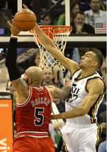 With center Enes Kanter dealing with a sprained ankle Monday, Gobert took advantage of some extra minutes to grab nine boards, score four points and block a shot.