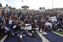 The Aggies rolled in their last game of the year at Romney Stadium, suppressing the Cowboys with another suffocating defensive performance while carving them up with runs, short passes and even special-teams returns. The 22 seniors Utah State sent off won their 30th game in the last four years, earned the top spot in the Mountain Division and got a berth in next week's conference title game against the Bulldogs.