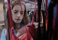 Ryann Gregory ,15, hangs adult clothing at the Candy Cane Corner. Volunteers on Saturday set up this year's store, an annual collaboration between The Road Home, Volunteers of America, Utah and YWCA Utah. Parents in need can select donated gifts for their children plus clothing and housewares. The store opens Monday. Donations of new clothing, blankets and toys, plus cash donations, are being accepted.