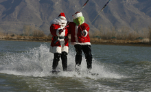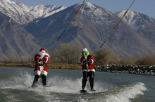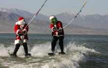 Santa and the Grinch (Keith Morgan and John Lohner), will be water skiing for a good cause - inviting the public to watch and bring a canned food item to donate to the Utah Food Bank, as they waterski on Utah Lake, Saturday November 30, 2013.