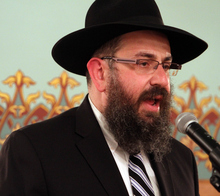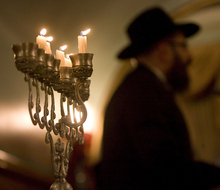 Rabbi Benny Zippel of Chabad Lubavitch of Utah presides over the menorah-lighting ceremony at the Governor's Mansion, December 2, 2013 in Salt Lake City. Community and religious leaders representing many faiths were present for the event.