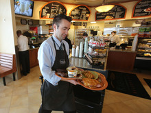 Joel Orton serves up fresh breakfast fare at Kneaders Bakery, celebrating its 16th anniversary this week with the opening of a brand new store in Orem. The new store replaces the company's first and original location that had gotten too small. Kneaders now has 25 stores in four states with more expansion plans in the works.Francisco Kjolseth | The Salt Lake Tribune