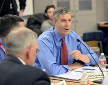 Education Secretary Arne Duncan has a roundtable discussion with parents teachers and educators at Northwest Middle School in Salt Lake City Thursday Dec. 5, 2013. In 2010 the school got a $2.3 million federal School Improvement Grant. Such grants target Title I schools with high populations of impoverished students. This school has shown dramatic improvement in academic performance over the three years.