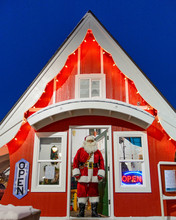 It looks much different than the old one. It's not so much a shack as it is a building fit for Santa's North Pole workshop. It is two stories high, with a big exposed ceiling and glass doors and windows so Santa can be seen inside by passing motorists.