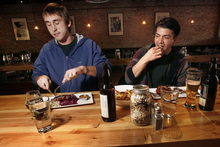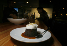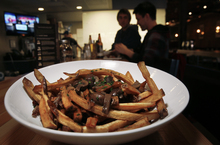 For main dishes, you'll see pub staples including fish and chips ($9), three standard but well-seasoned cod strips delivered hot with a delectably creamy malt vinegar mayonnaise and fries; tacos ($10); and bratwurst ($13). Other, more interesting meal-size entrees are the pork schnitzel ($12) with spätzle with the same mushroom gravy as on the poutine, and crispy skinned Utah trout ($15) with fried fennel.