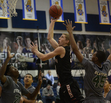 Minutes later, though, after an improbable series of events in the final 4 seconds of the game, Harris' unfortunate mistake was transformed into a minor footnote in a signature 65-63 win for the Caveman against Overland (Colo.) on Friday, the second day of Orem's Great Western Shootout.