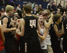 The small contingent of American Fork students exploded from the north stands and mobbed Andrus, Bailey and Harris, along with the rest of the Caveman, at the center of the floor in what was perhaps the season's first rushing of the court.