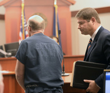 At first, the 49-year-old Lawson who has been described as Shurtleff's "fixer" and reportedly traded more than 680 calls and texts with Swallow over a four-year period stood on the wrong side of his attorney. He fidgeted with his shackles as the judge read aloud the six felony charges against him.