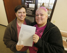 One of the three couples, Terri Henry and Penny Kirby, of Springville, said that instead of a marriage license, they were given a letter explaining the county's position. "In 15 minutes," Henry said, choking back tears, "we saw them give licenses to two straight couples."