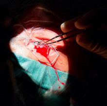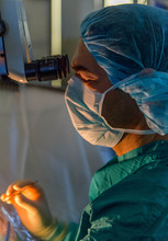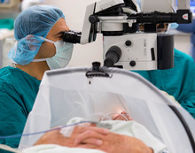 He made an incision at the edge of the iris and inserted a device to break up and suction out Chappell's clouded lens. Then he replaced the lens with the telescope, tucking it inside the pupil behind the muscular ring of the iris.