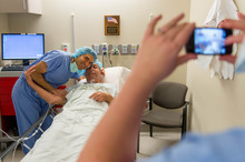 "Hang in there. We're almost done," he told Chappell. "The lens is in there. I just have to suture it with about nine to 10 stitches, OK?"