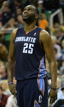 Charlotte Bobcats center Al Jefferson (25) checks out the scoreboard, as the Bobcats trail th