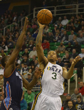 Utah Jazz point guard Trey Burke (3) shoots for the Jazz at EnergySolutions Arena, Monday, De