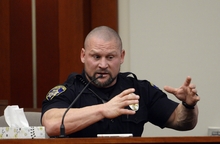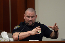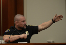 The police officer took the witness stand Thursday in his uniform blues, a radio affixed to his right shoulder.