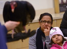 IBell Arroyo and her daughter Shamille, 6, learn about "Miss Irvana" the Turkey Vulture and her environment during Tracy Aviary's program "Exploring Our Communitrees." The program teaches participants the hidden wonders of local trees up-close and personal, and provides a few nose-to-beak experiences with some of the native birds that call them home, Saturday, January 11, 2014