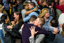 Tears run down Michael Ferguson's face as he and Seth Anderson take their first couple's dance at Love Elevated at the Rail Event Center Saturday January 11, 2014. Love Elevated, a celebration of same-sex marriages that occurred during the 17 days between U.S. District Judge Robert Shelbyís ruling striking down Utah's ban on gay marriages and the Supreme Court's stay on further marriages pending an appeal by the state, took place in Salt Lake City.