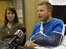 "I feel extremely blessed," Morgan said Wednesday from a wheelchair in Ogden's McKay-Dee Hospital. He broke both femurs and his left arm in the slide, but he is otherwise all right and gets to go home in two weeks.