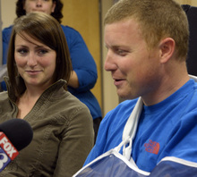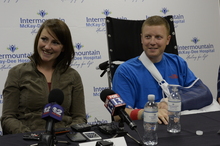 It took about eight hours for rescuers to get Matt Morgan into an ambulance. Emilee Morgan finally saw her husband again at 11:30 p.m. at the hospital. He was already smiling, talking and joking with the nurses.