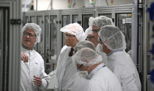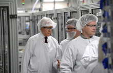 To get in, the delegation dressed up in hair nets and clean cloaks. The members all washed their hands to reduce further the risk of introducing troublesome germs, then circulated among glass-enclosed conveyor belts that wheeled a four-pack of catheters, like skiers on a lift, from one station to another.