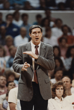 Jerry Sloan watches as his team streches before a practice in 1999.