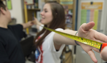 In an introductory statistics class last week, Lake had his students use tape measures to learn fellow students' height standing and kneeling. They then entered the data into TI-Nspire calculators that communicate wirelessly with his computer. He can "push out" a question that the students have to answer.