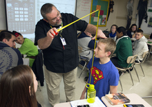 He had teams of students make scatter graphs with their data, and the graphs showed on a big screen.