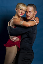 Figure skating athletes John Coughlin and Caydee Denney pose for a portrait during the Tea